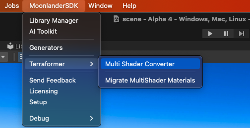 This will convert your material to a Multi Shader. You can now modify your assets with TerraformerGenerator and ObjectPlacementGenerator.