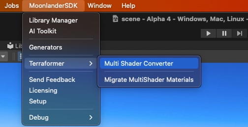 The Multi Shader is a custom Shader you can assign your materials to to function for Terraformer and conforming objects to the terrain in ObjectPlacementGenerator. With Multi Shader you can quickly apply terrain customisation to your materials.